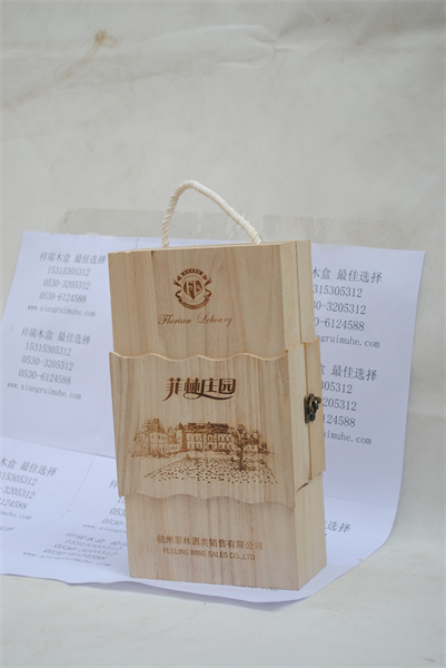 泡桐木雙支裝葡萄酒禮盒,用料是北方廣泛產(chǎn)的木材,泡桐木,特點(diǎn)是質(zhì)輕且不易變形,成本低,易加工。木盒可以做各種顏色的油漆等,上面的圖案可以用印刷,烙印,噴彩等。