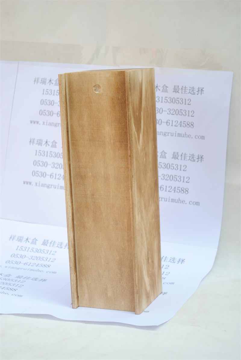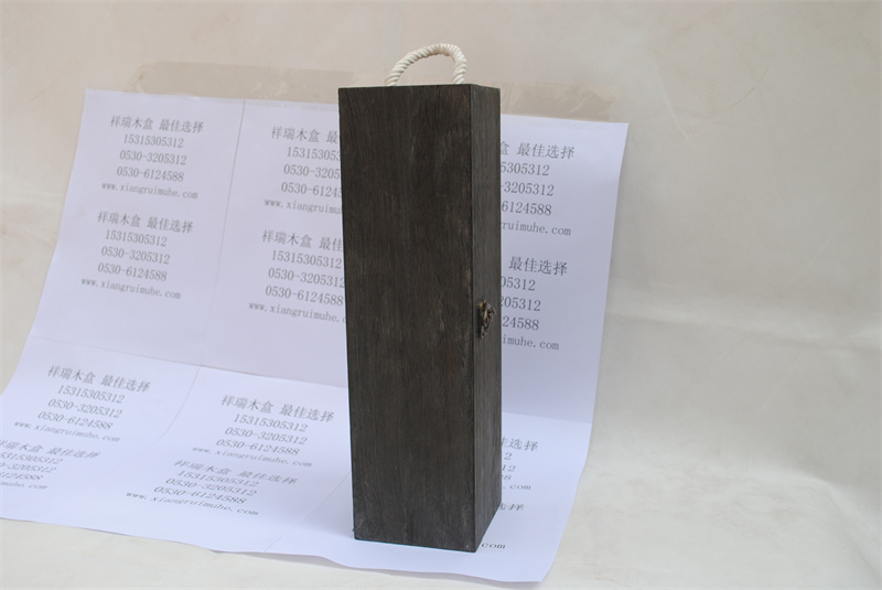 火燒碳化色單只裝木紅酒盒:用料多為實(shí)木或膠合板,成型后,用高溫火燒,使木質(zhì)表面碳化成色,也可以做各種顏色。