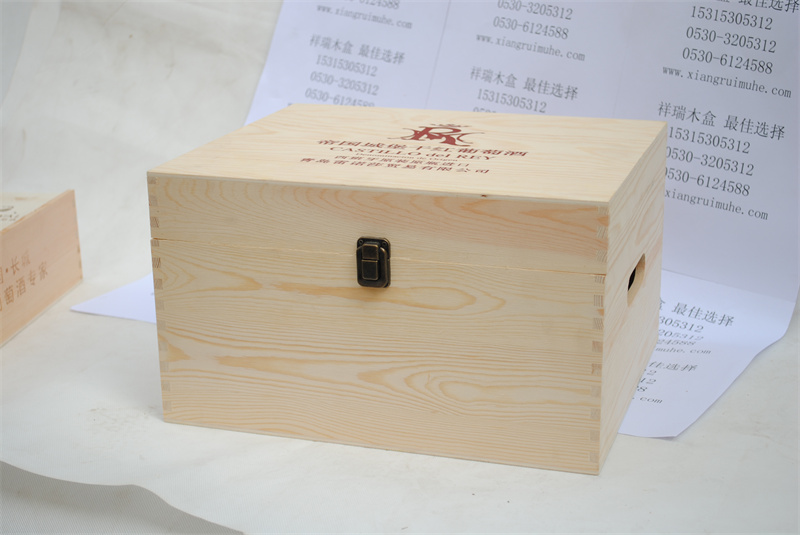 樟子松六支裝紅酒木箱:木質為進口俄羅斯樟子松,側面實木,蓋子有實木或膠合板,底板多是多層板,里面卡板為多層膠合板。款式多是翻蓋式或抽拉式,圖案可以絲網印刷,烙印,激光雕刻等,木箱外面可以做油漆。