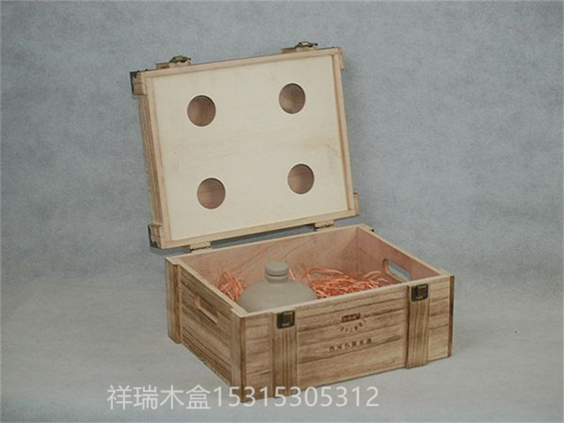 白酒四瓶包裝禮品木盒:原料為曹縣的泡桐木,燒色仿古做舊,平鋪一層放4瓶,蓋子為抽拉式。價(jià)格錢(qián)中等,木盒整體效果好。