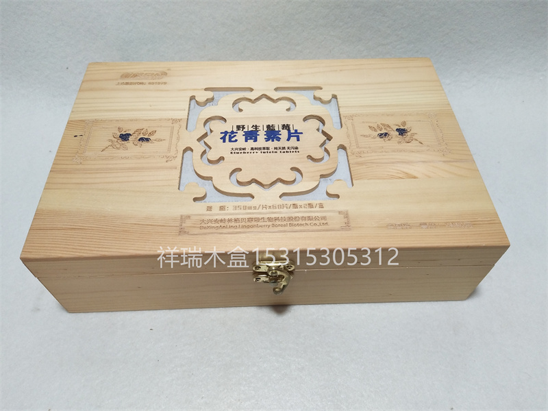 尺寸:鏤空式藍莓葉黃素花青素片包裝木禮盒
