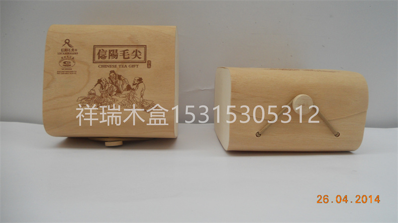 信陽毛尖茶禮品盒裝-經典老款-自然款,松木實木禮盒,自然環保,圖案自然清晰。